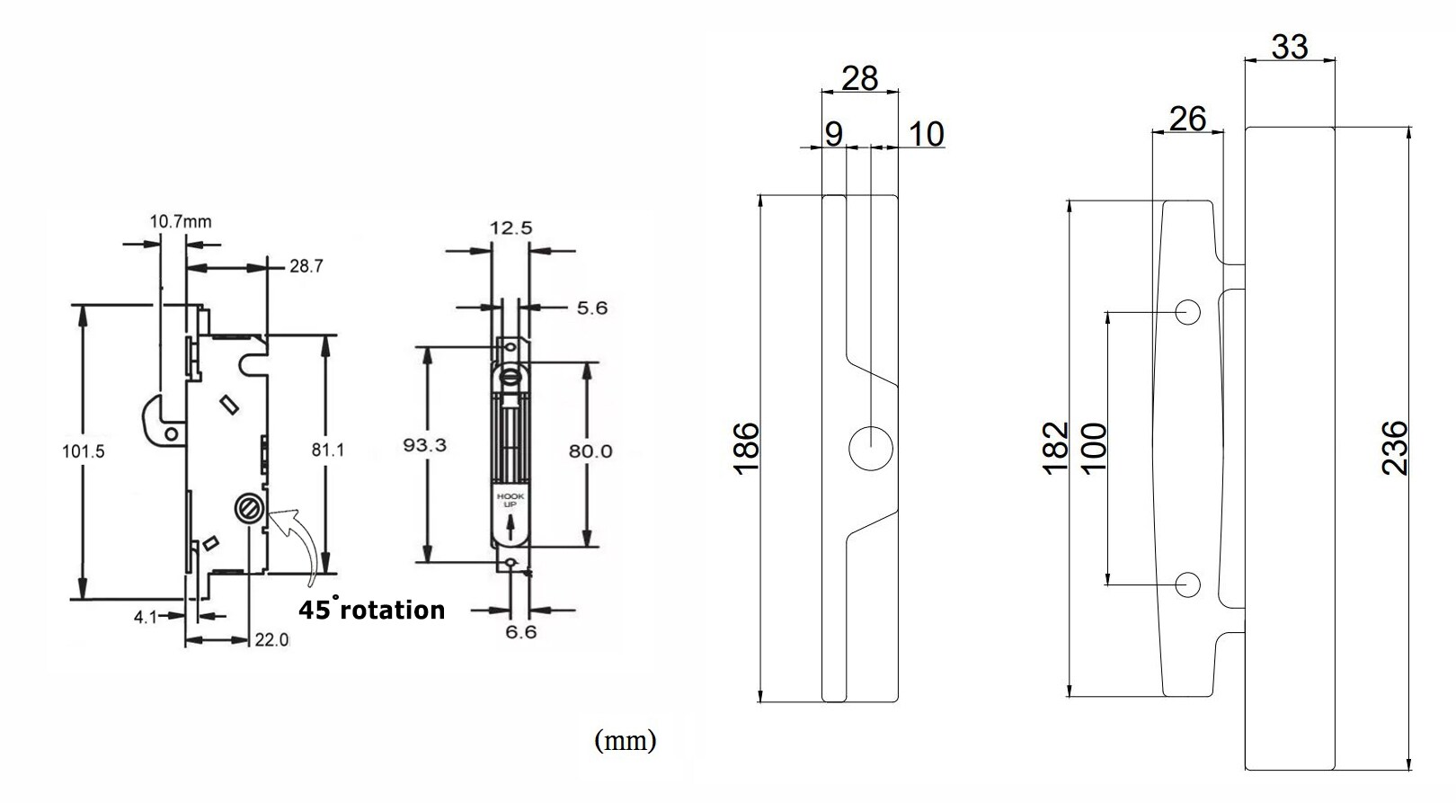 * Operate by Lock cylinder(SC keyway, 5 PINS)