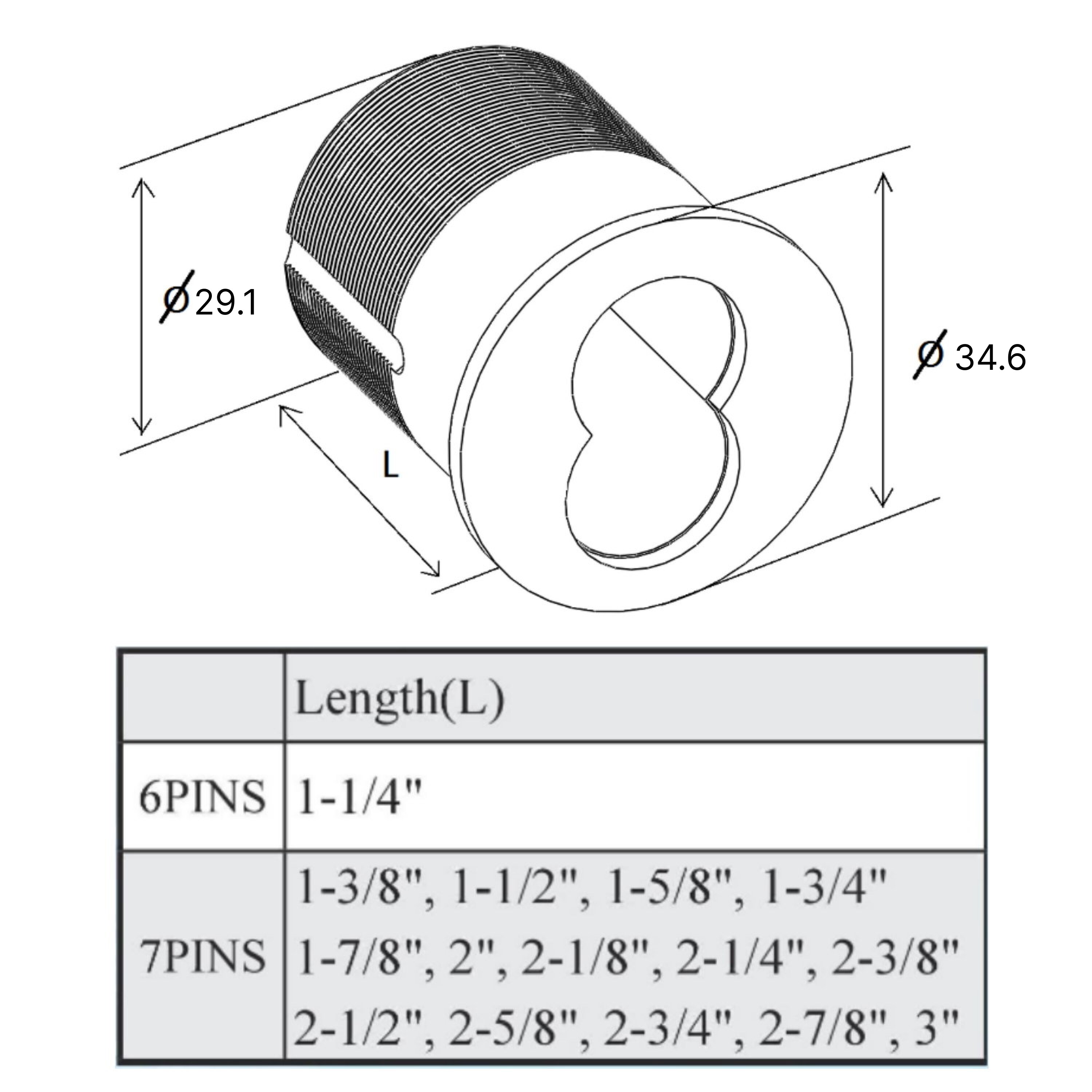 * 7 pins small format interchangeable core mortise cylinder (SFIC) * The cylinder core with 7-pin tumbler mechanism