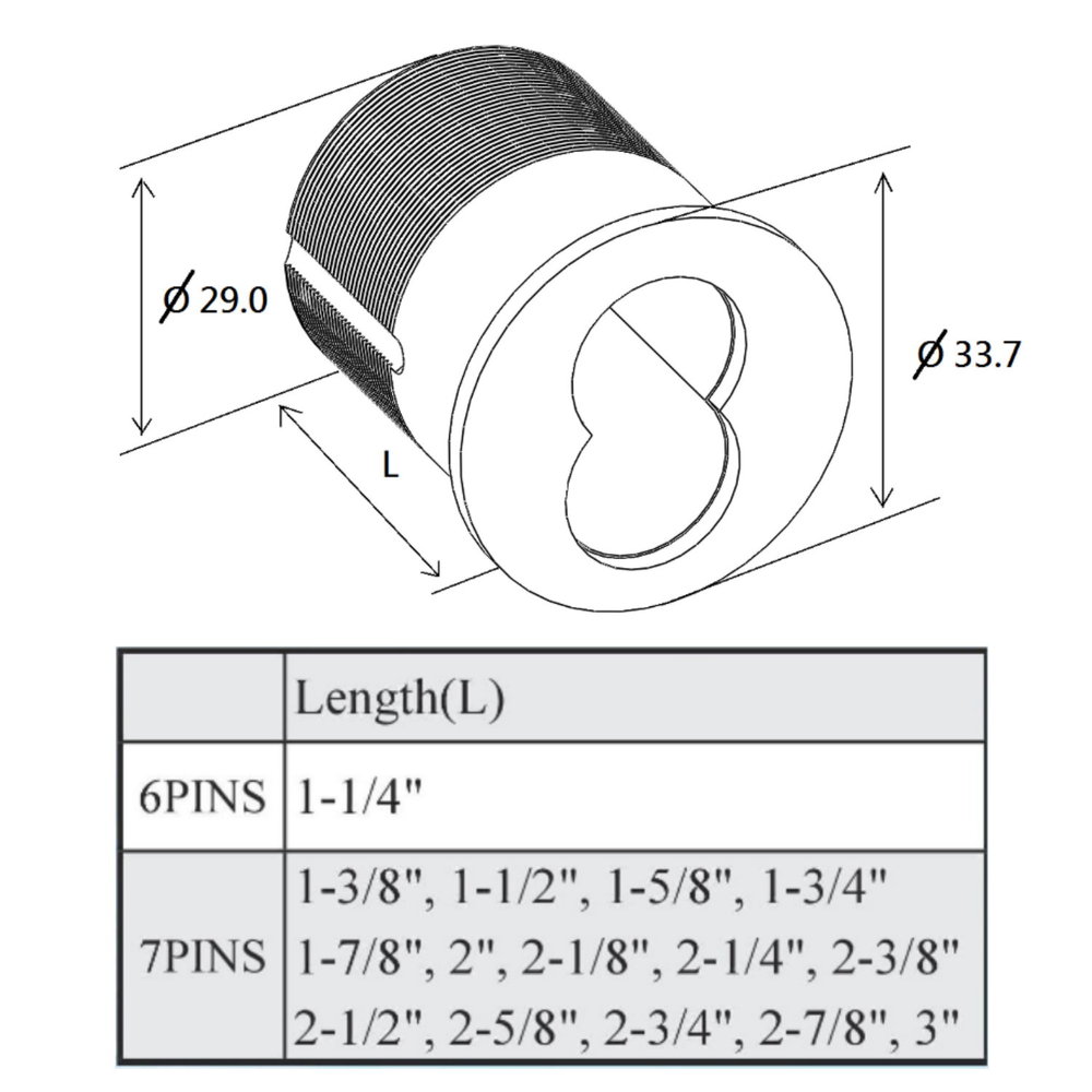 * Length of cylinder housing for 7 Pins : 1-3/8" - 3"