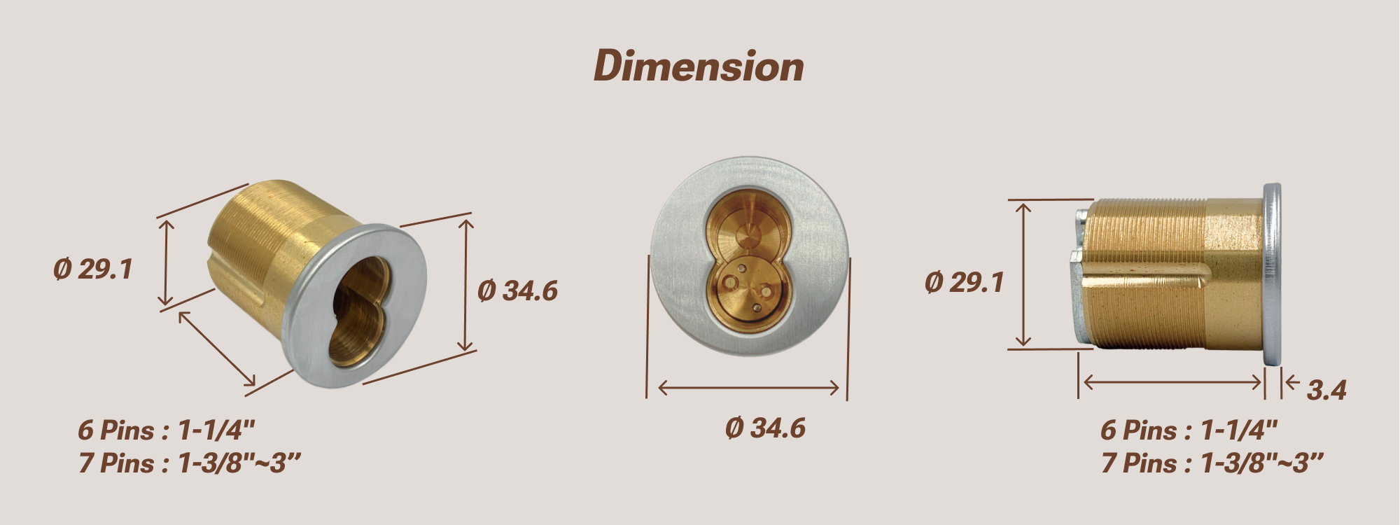 * Length of cylinder housing for 6 Pins : 1-1/4"