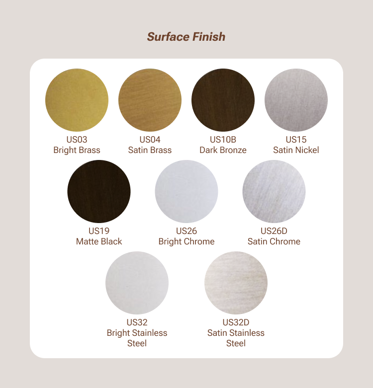 * Different surface finished available (US03, US04, US10B, US15, US26, US26D, US32, US32D)