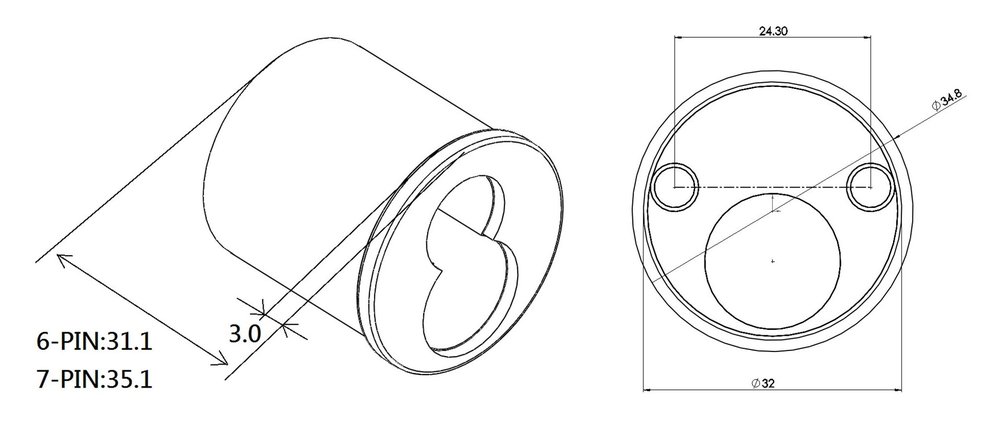 Drawing of Interchangeable Core Brass Mortise Rim Cylinder Housing